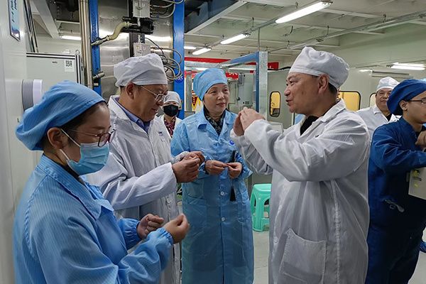 郭德源常務副理(lǐ)事(shì)長(cháng)一(yī)行(xíng)在王法祥董事(shì)長(cháng)的(de)陪同下(xià),參觀了(l¶e)公司展廳、河(hé)南(nán)省光(guāng)纖拉絲智能(néng)車(chē)間(jiān)和(hé)以天河("hé)通(tōng)信全國(guó)五一(yī)勞動獎章(zhāng)獲得(de)者馬娜娜同志(zhì)β命名的(de)“馬娜娜創新工(gōng)作(zuò)室”,并聽(tīng)取了(leΩ)公司總體(tǐ)情況彙報(bào)。調研人(rén)員(yuán)對(duì)光(guāng)纖拉絲車(chē)間(jiān)的(de)精細σ化(huà)、智能(néng)化(huà)制(zhì)造水(shuǐ)平和(hé)天河(hé)通(t ōng)信榮獲國(guó)家(jiā)級專精特新“小(xiǎo)巨人(rén)”企業(yè)表示贊®歎。
