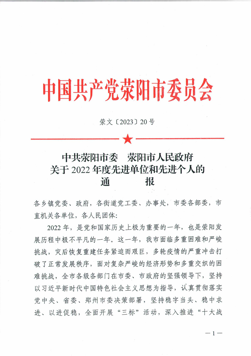 榮獲2022 年(nián)度荥陽市(shì)企業(yè)創新獎
