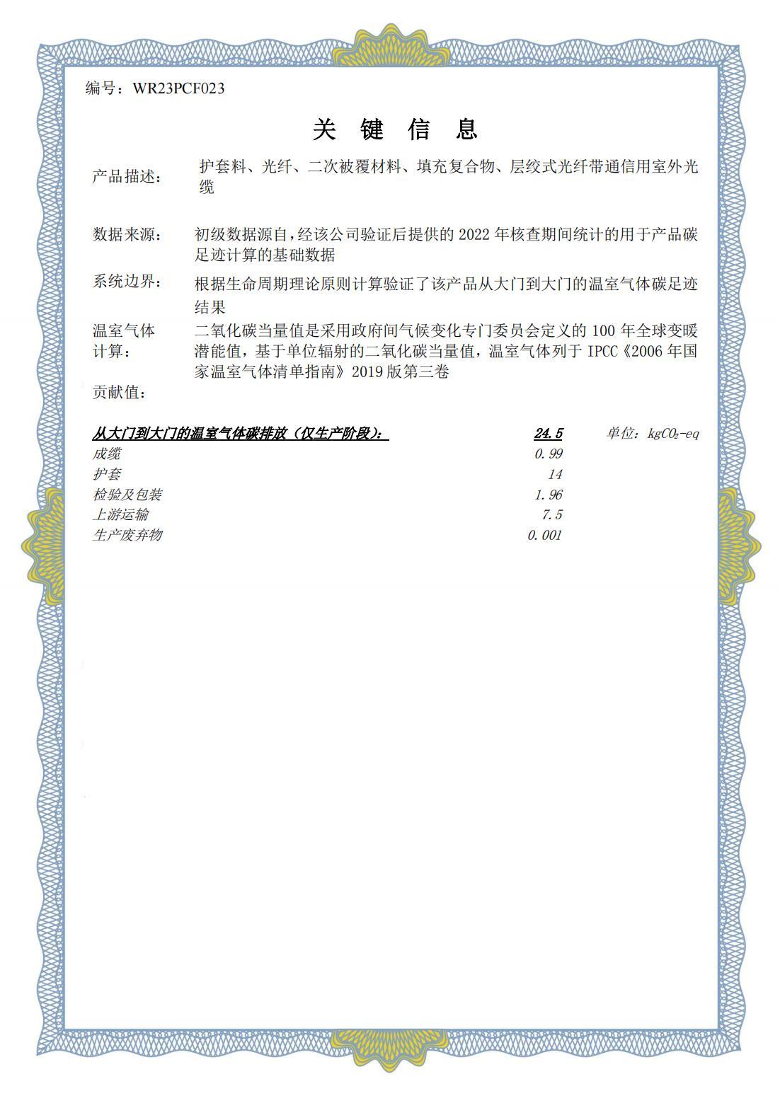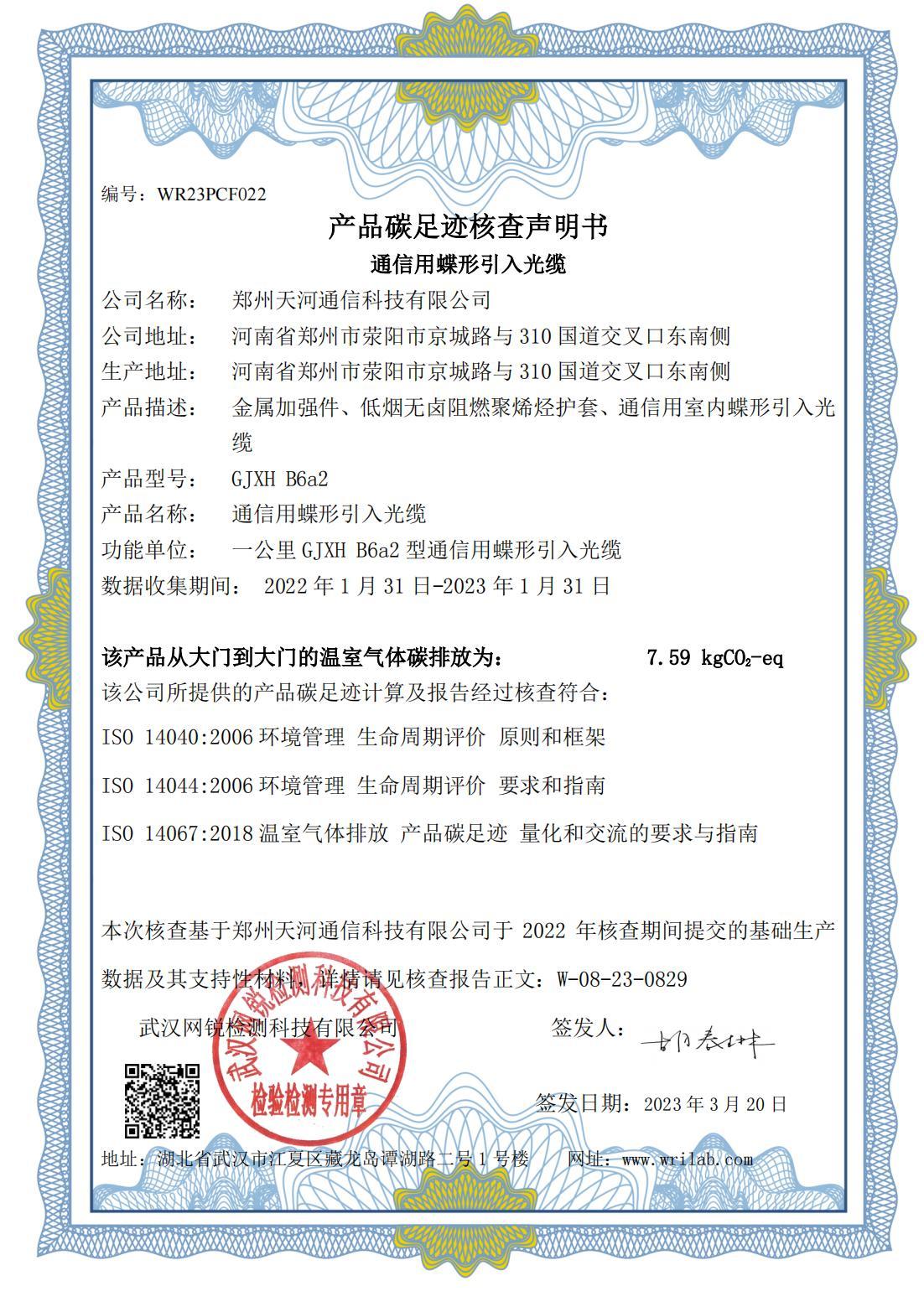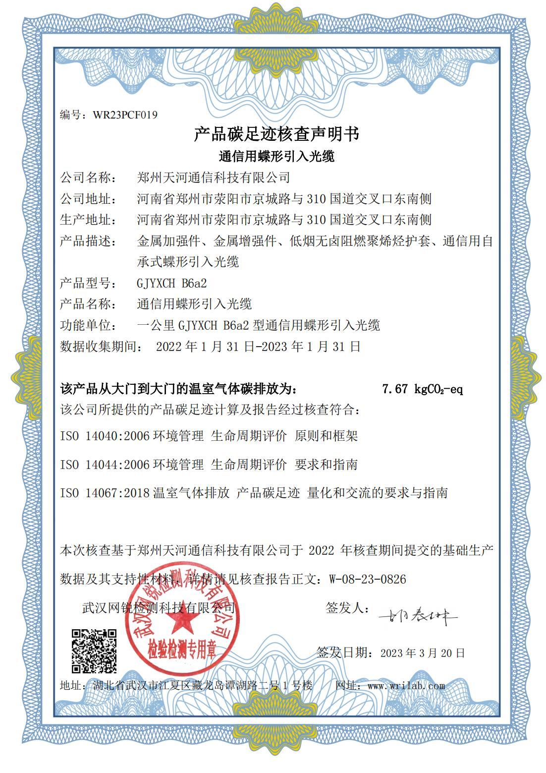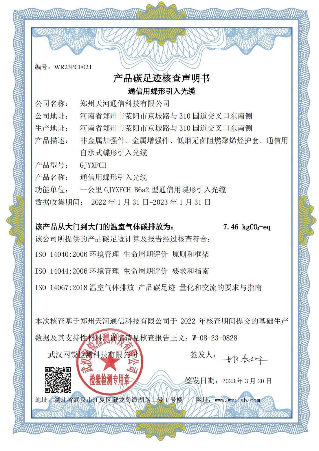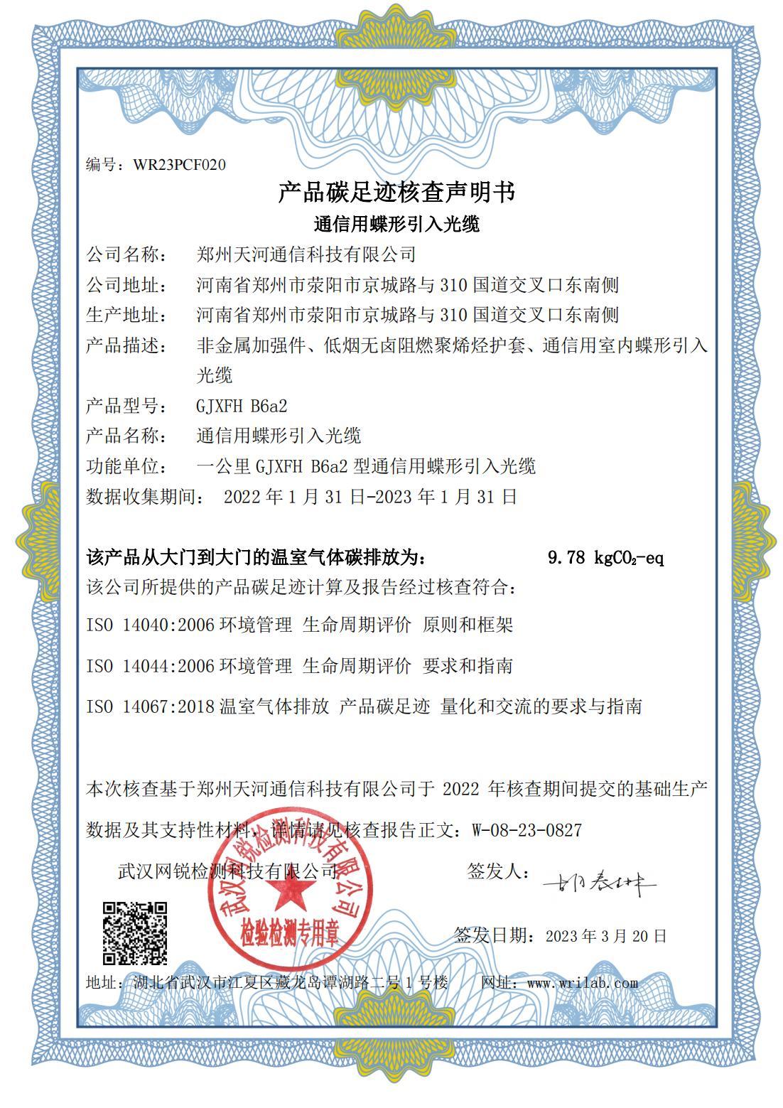 産品碳足迹核查聲明(míng)書(shū)