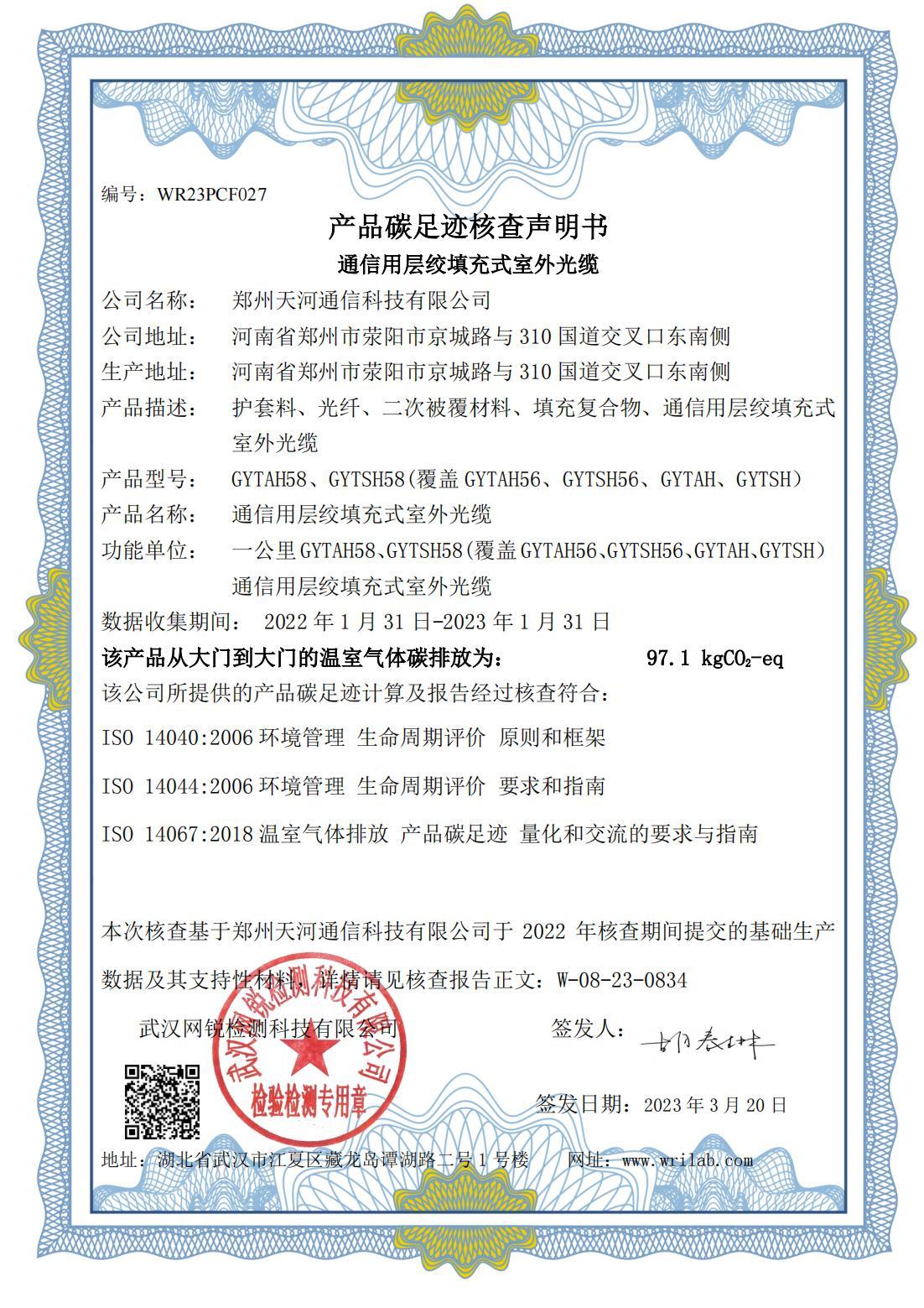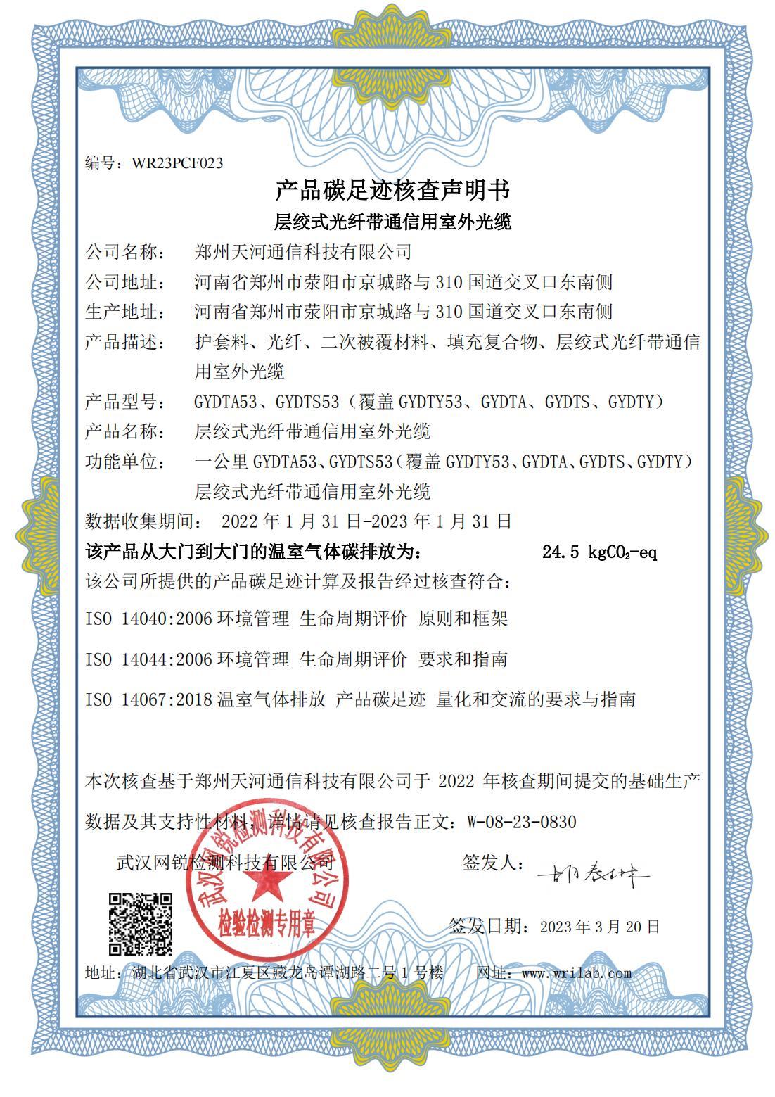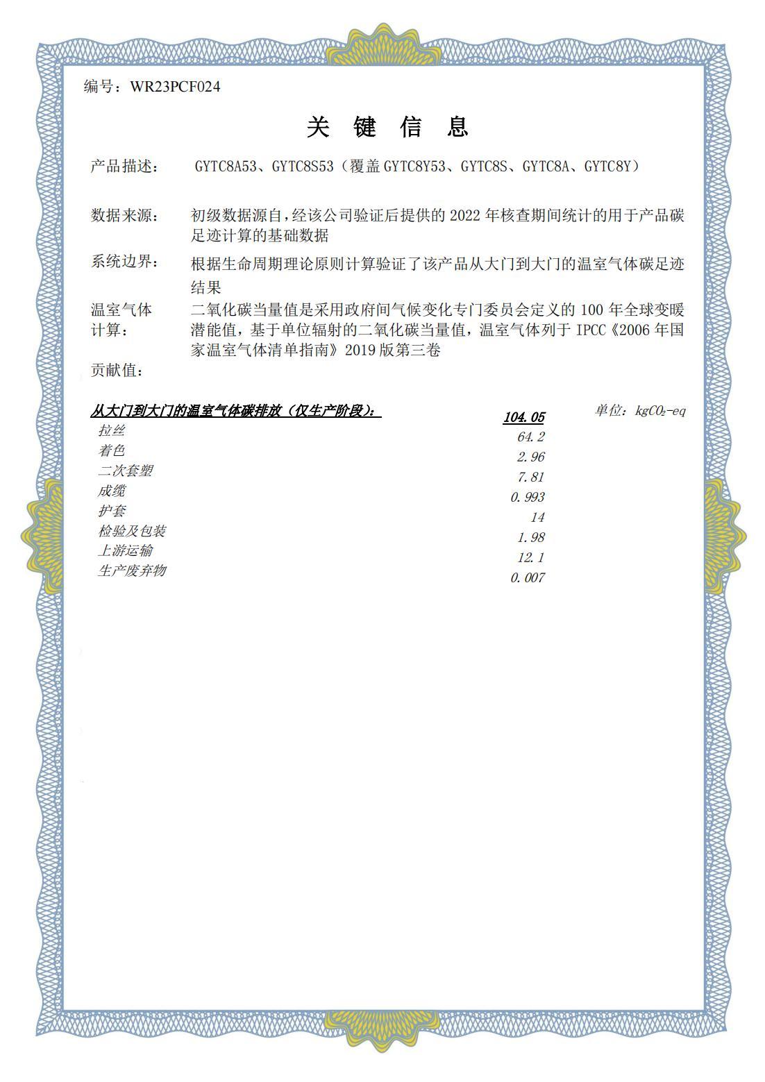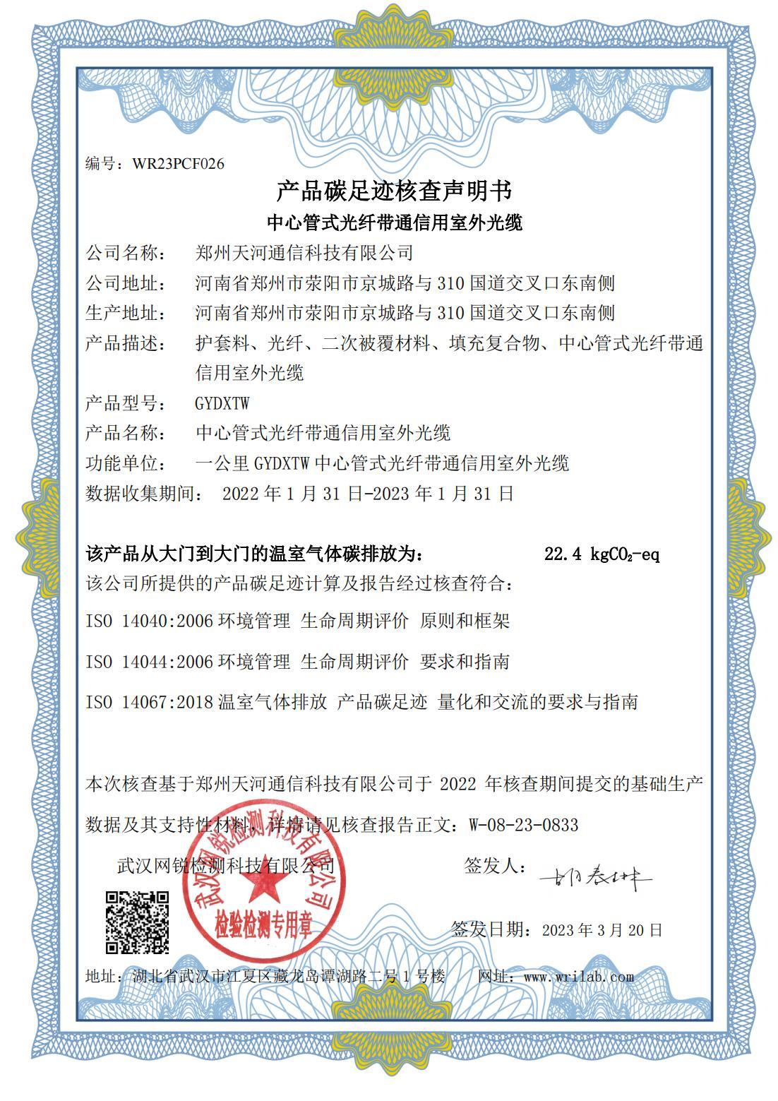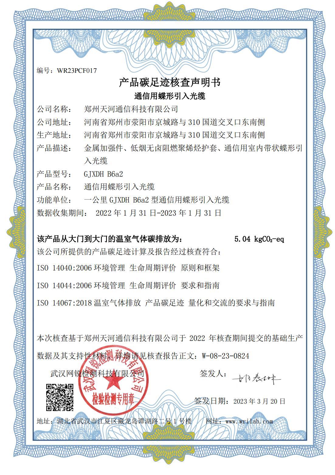 産品碳足迹核查聲明(míng)書(shū)