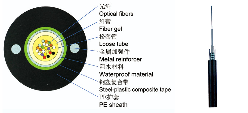 将光(guāng)纖套入由高(gāo)模量的(de)聚酯材料做(zuò)成的(de)松套管中,套管內(nèi)填充防≥水(shuǐ)化(huà)合物(wù)。松套管外(wài)用(yòng)一(yī)層雙面塗塑鋼帶縱包,鋼帶和(hé)松套管之間(jiān)加阻水(shuǐ)材料以保障光(guāng)纜的(de)¥緊湊和(hé)縱包阻水(shuǐ),兩側放(fàng)置兩根平行(xíng)鋼絲後擠制(zhì)聚乙烯護套成纜。